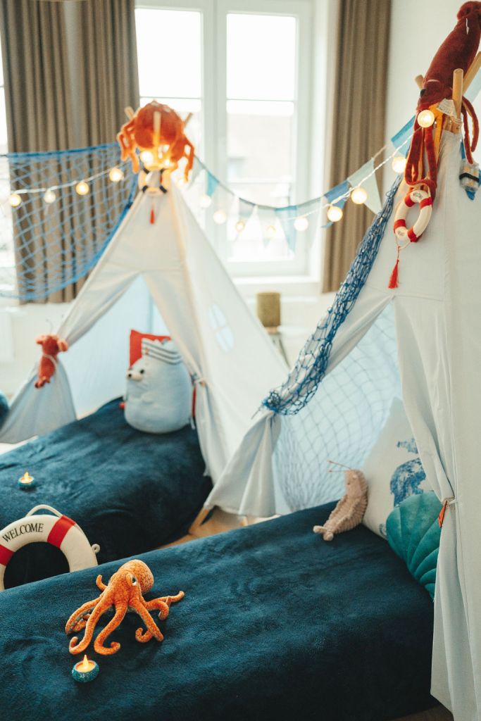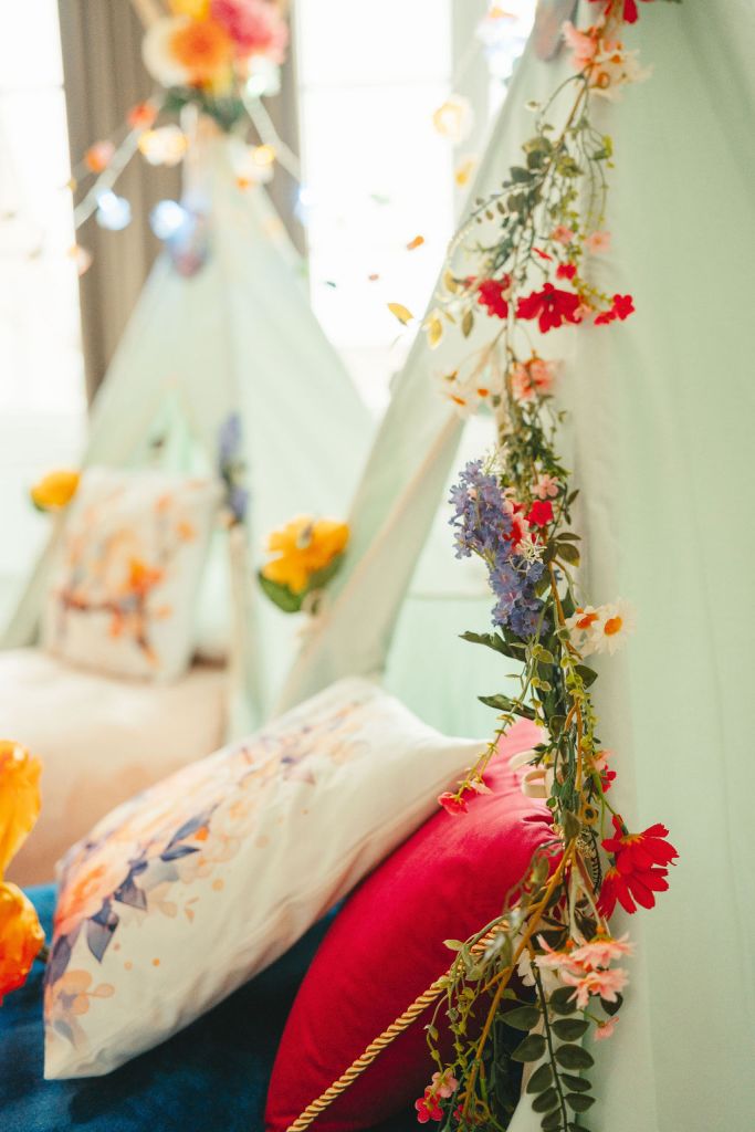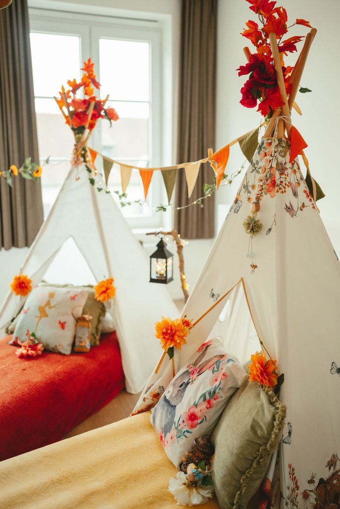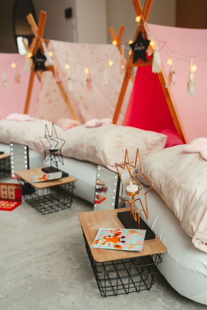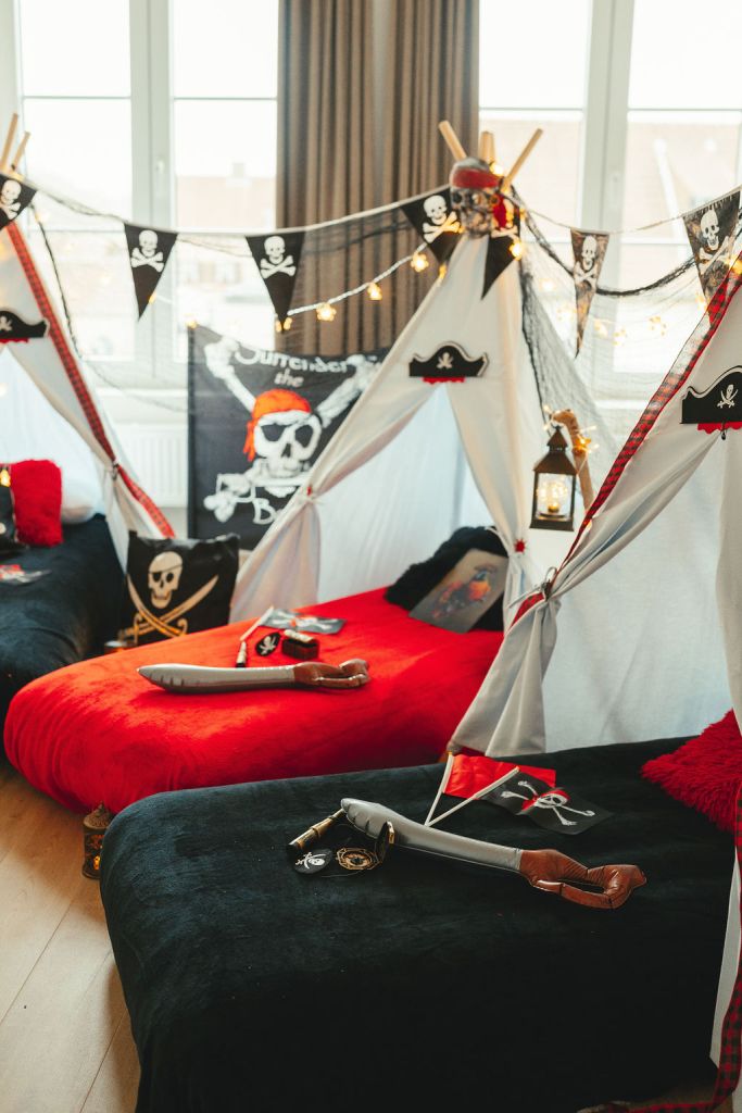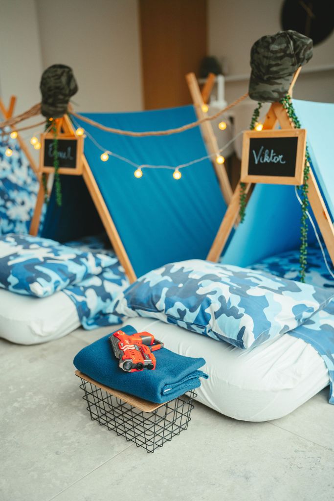 Met comfortabele matrasjes, sfeervolle tenten, feestelijke versiering en een speciale spel- en knutselbox is plezier gegarandeerd voor de jarige en alle vriendjes!